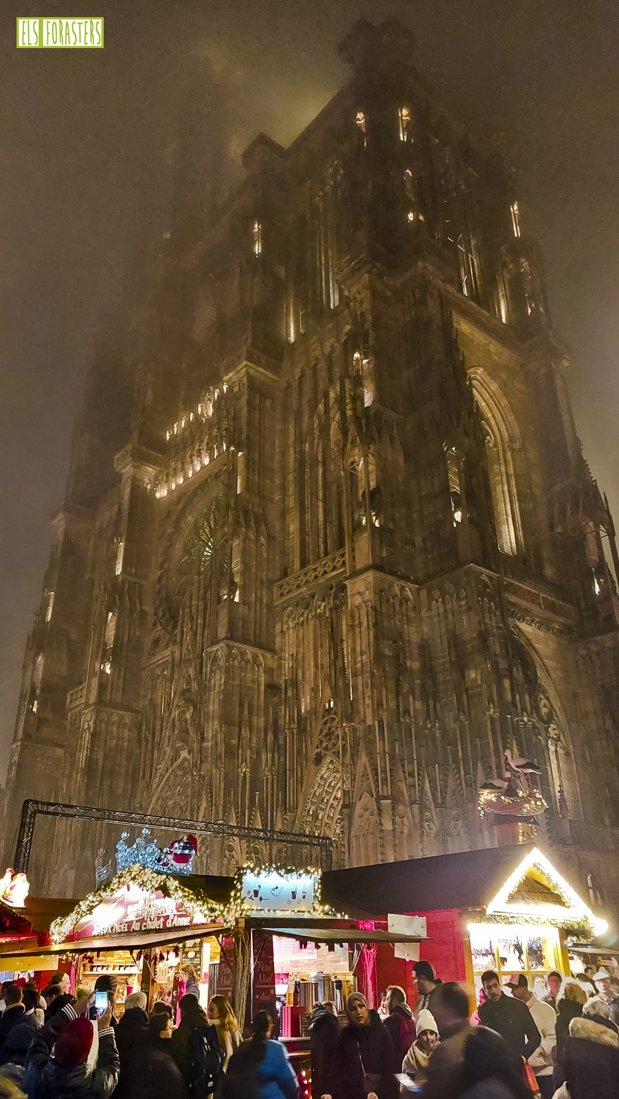 Siguiendo una de esas calles pequeñas te llevan a uno de los sitios mas espectaculares que hemos visto, la plaza y la catedral de Estrasburgo que en esta ocasión con la niebla densa que en algún momento no dejaba ver ni media catedral la verdad es que es espectacular...