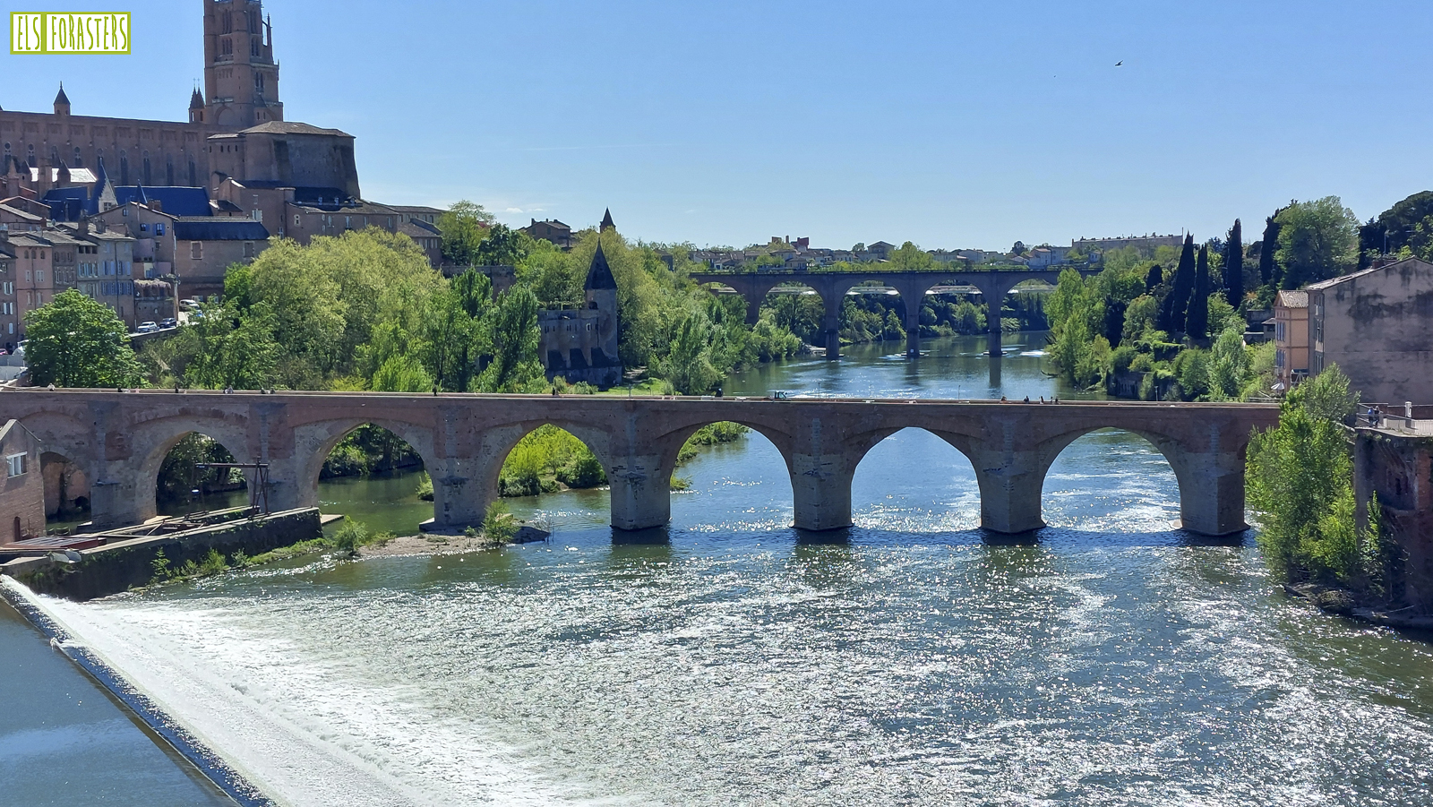 La ultima foto tomada de Albí, en la que se puede ver el "Puente Viejo" desde el "Puente Nuevo" detras del puente el Palacio de la Berbie junto a este el Museo Toulouse-Lautrec y mas a la izquierda la Catedral de Santa Cecilia de Albí.
